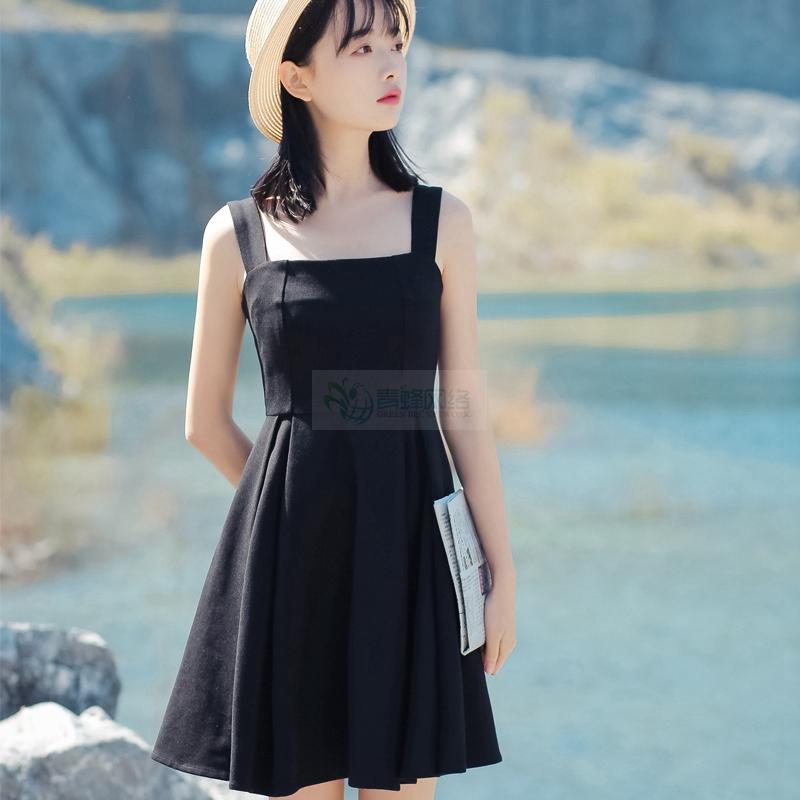 产品名称 : 初恋裙复古文艺学生2018新款韩版小清新小黑裙吊带裙子女连衣裙夏