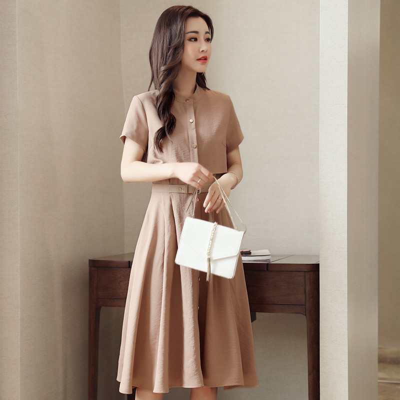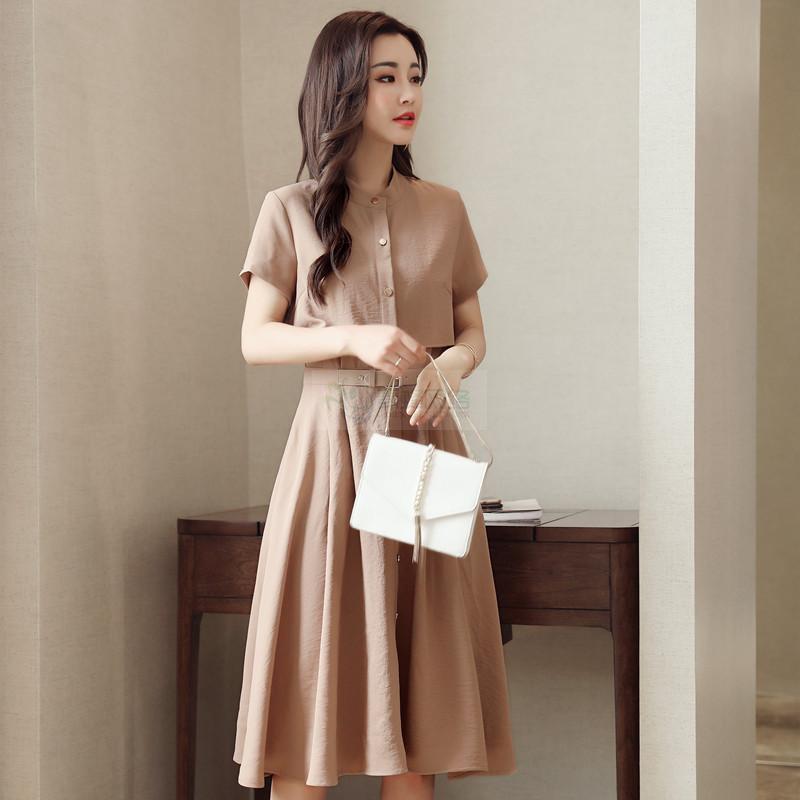 2018夏季新款韩版女装修身显瘦款A字裙子气质仙春夏装雪纺连...
