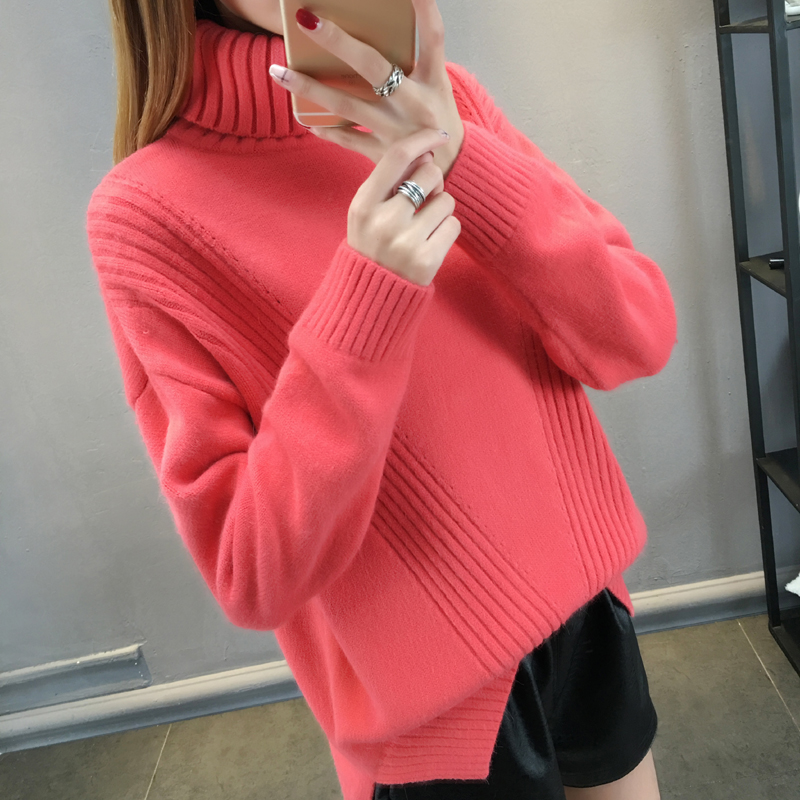 秋冬新款宽松高领套头毛衣女中长款韩版打底针织衫加厚女装学生潮