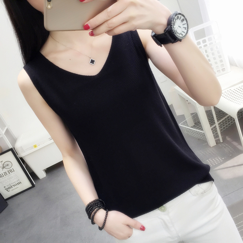 黑白色外穿针织背心女内搭春夏新款宽松棉麻小吊带打底衫无袖上衣
