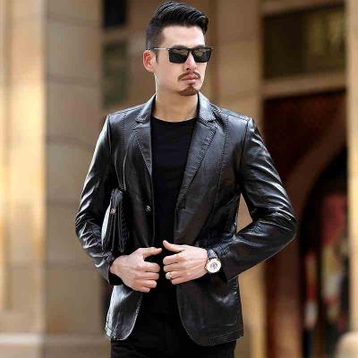 春季新款男士商务皮夹克薄款pu皮衣男时尚休闲中年西服领皮外套...